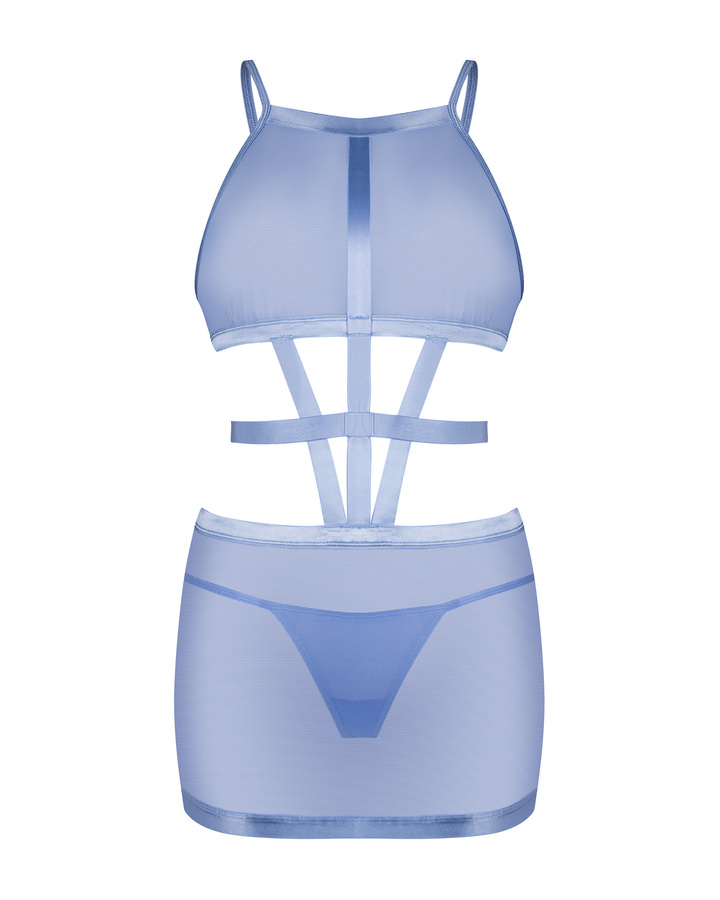 Designed in the heart of the EU, the blue mesh dress and thong vow to elevate your sensations to celestial heights.