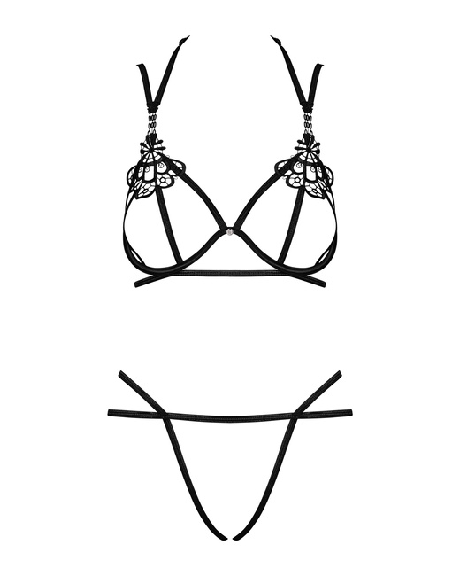 Set di lingerie in pizzo: reggiseno a mezza coppa con ferretto e tanga senza cavallo