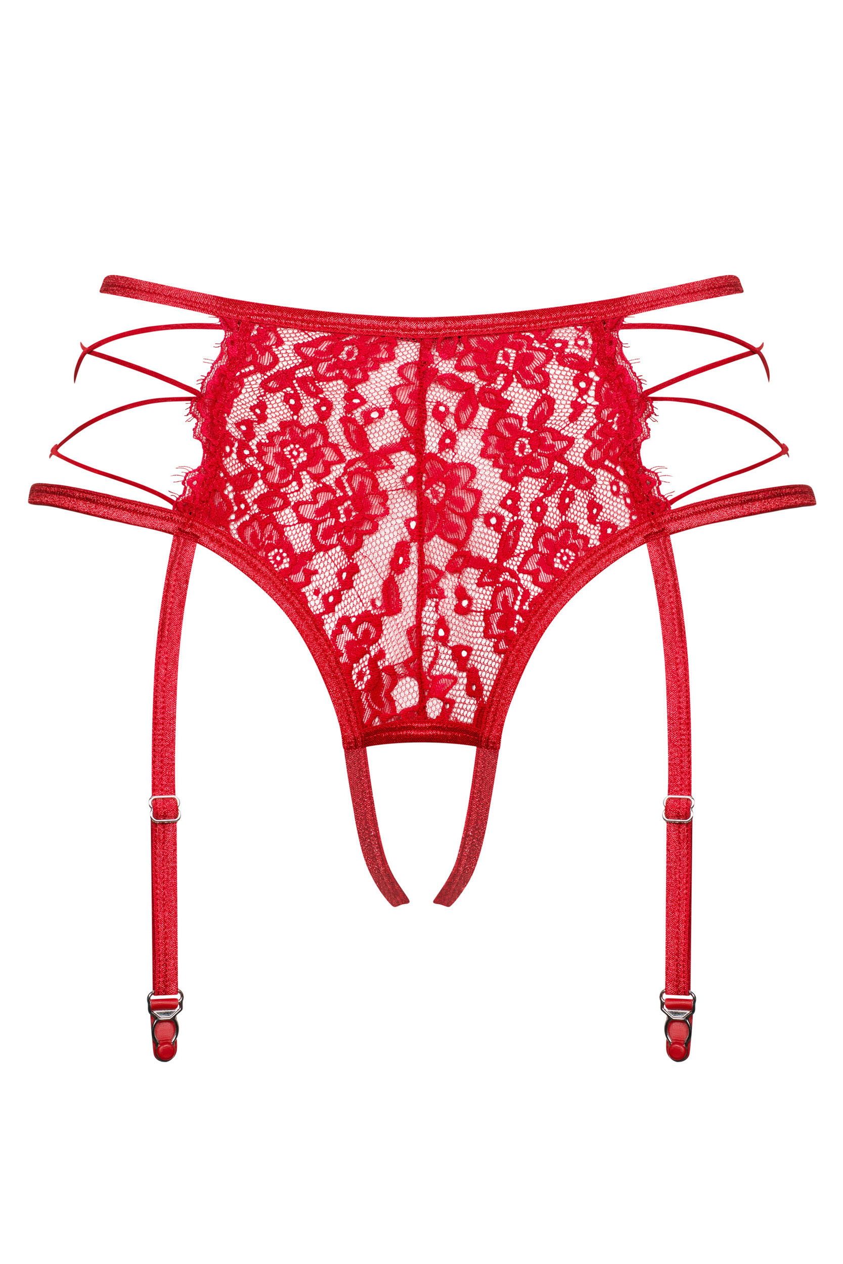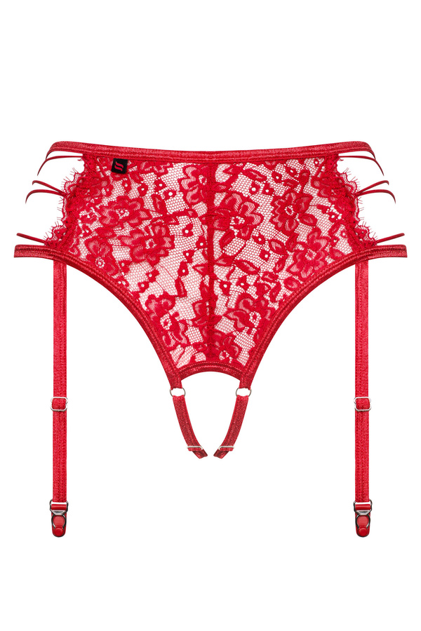 Sorpresa! Abbiamo preparato una meravigliosa cintura con giarrettelle 2in1 con perizoma per te. Lasciati sedurre dal colore rosso, dal fantastico merletto e dal taglio della Rediosa. L'intero è coronato da cinghie intrecciate liberamente sui fianchi. Tessuto delicato, design frivolo e pattern delicato... è questo che hai in mente quando senti "lingerie sensuale", vero? L'unica cosa che il tuo uomo sognerà è di toglierti questa cintura con giarrettelle unica.