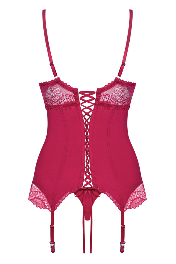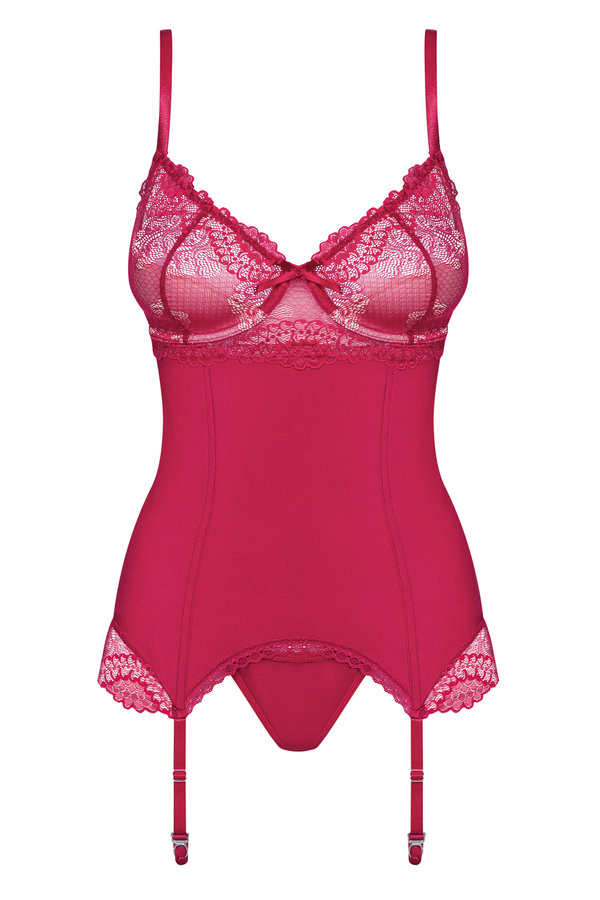 Abbiamo per te un mix caldo di colore caldo e merletto - il corsetto meraviglioso Rosalyne con perizoma! Sei pronta a vederti allo specchio indossandolo? Certo che sì! Ti sentirai così tentatrice e femminile che il tuo uomo lo sentirà anche lui! Invitalo nel tuo paese dei piaceri e trascorri una notte piena di avventure. È tempo di giocare sexy!