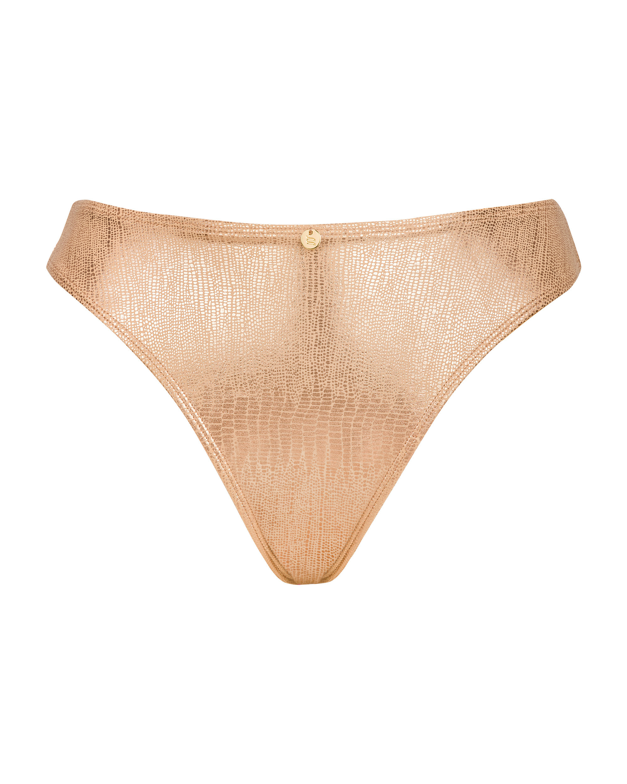 Disegno di serpente in un bel colore beige con un ornamento d'argento sulla parte frontale - questo è l'eleganza al suo meglio. Le mutandine Filipines combinano uno stile classico e un taglio perfettamente adatto al corpo. Il tessuto dorato, che si riflette dolcemente al sole, enfatizzerà la tua abbronzatura in modo splendido, e in tandem con un reggiseno Filipines abbinato, creerà un outfit da spiaggia elegante! Prova questo taglio che si adatta alla figura e vedi da te stesso che il classico non passa mai di moda!