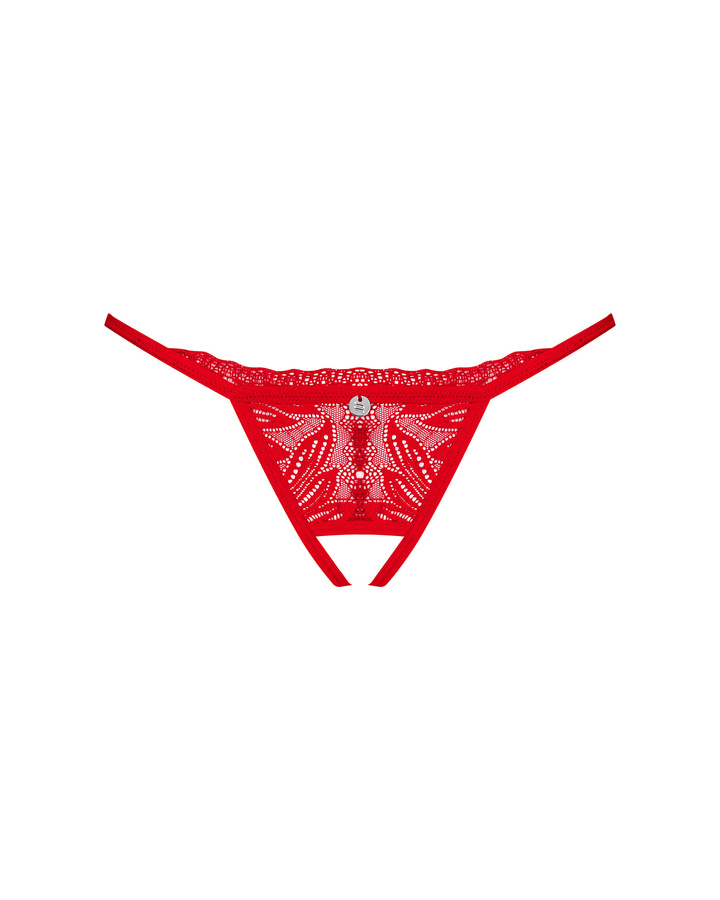 Hai bisogno di un accessorio sexy per il tuo prossimo rendezvous romantico? Vuoi accendere l'atmosfera nella tua camera da letto? Il perizoma Chilisa, progettato nello spirito del minimalismo, si adatta perfettamente al tuo piano. Rosso seducente, piccolo ritaglio sopra i glutei, pizzo e cavallo aperto – la ricetta perfetta per momenti indimenticabili. Sii coraggiosa, fai una forte impressione e libera la tua natura predatoria!