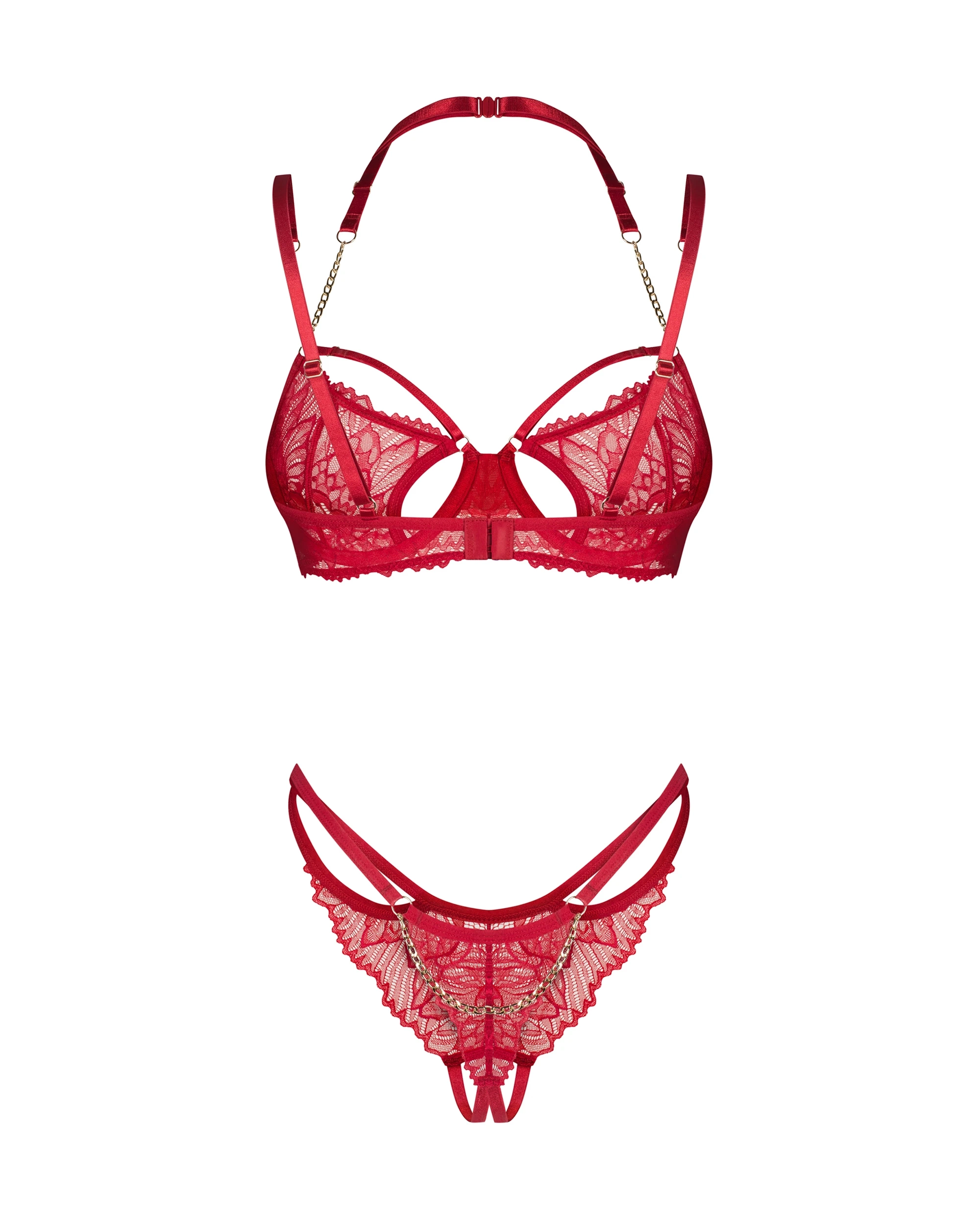 Set di lingerie rosso con catene dorate