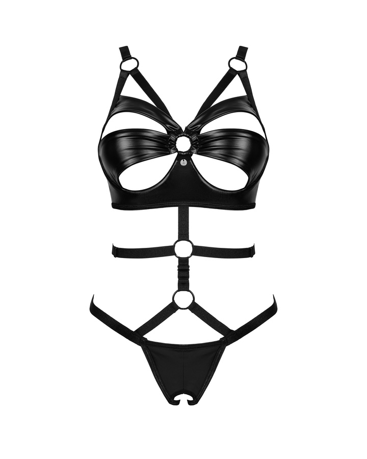 Ami i design classici, ma stai cercando qualcosa di speciale questa volta? Hai bisogno di lingerie che ti sorprenda con un taglio originale e ti faccia arrossire durante una serata con il tuo partner? Hai trovato un match perfetto! Il bodysuit Armares è progettato in modo unconvenzionale, combinando un tessuto lucido, cinturini regolabili e anelli metallici. Il nero seducente ti farà sicuramente sentire sensuale in ogni situazione.